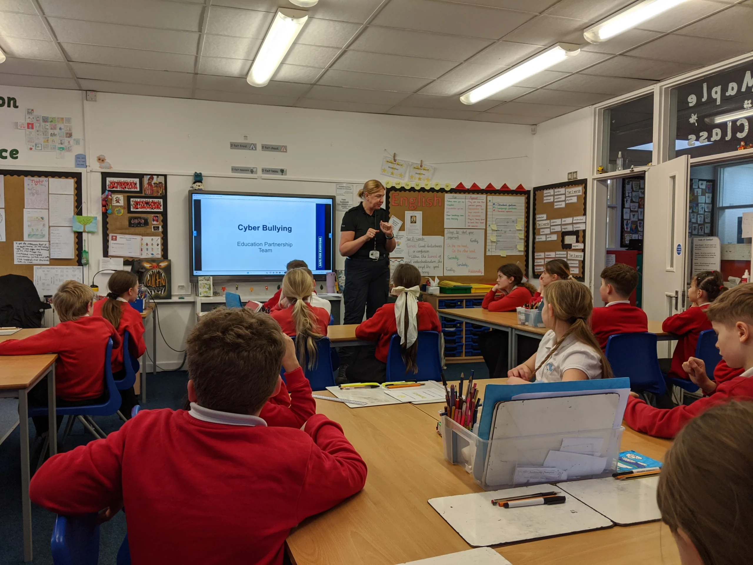 Our Year 5 children took part in an engaging and informative workshop led by the Police Education Officers, focusing on the important topic of cyberbullying. The session explored what cyberbullying looks like, how it can affect others, and – most importantly – how children can stay safe online.