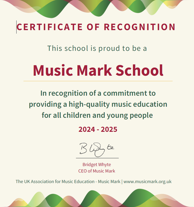 The Federation has been awarded the Music Mark again this year for both schools for the recognition and commitment to provide high quality music education for our children.