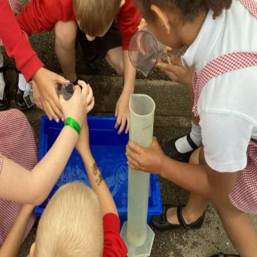 This week, we have been making the most of the warm weather by taking our learning outside. In Mathematics, we explored volume and capacity using jugs, cups and water. In Physical Education, we have been busy preparing for Sports Day – we are super excited!