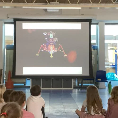 We were very excited this week to hear that OpenBox Theatre Company were visiting us. Through drama and acting, we learnt about Neil Armstrong, Buzz Aldrin and Michael Collins’ journey to the moon in 1969. We explored how they prepared for their journey, how they travelled safely and what they did upon reaching the moon. We loved lying down and pretending to blast off into space!