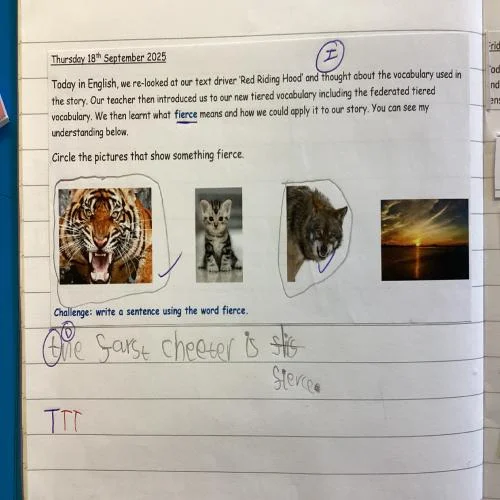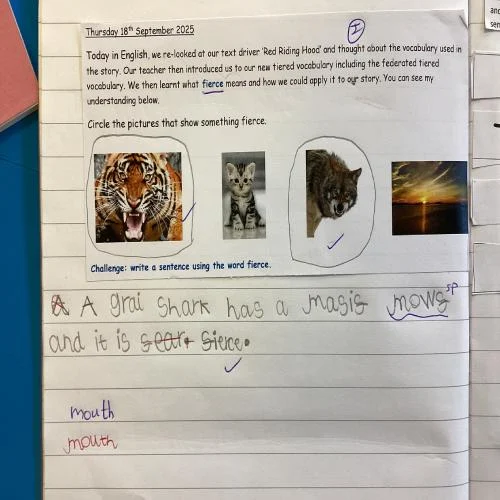 This week in English we started our new learning journey all about Red Riding Hood. We went on a walk through the woods to discover different clues from the story. We found a cape, a basket and fierce wolf! Next, we had so much fun exploring the text and joining in with predictable phrases.