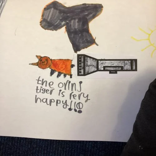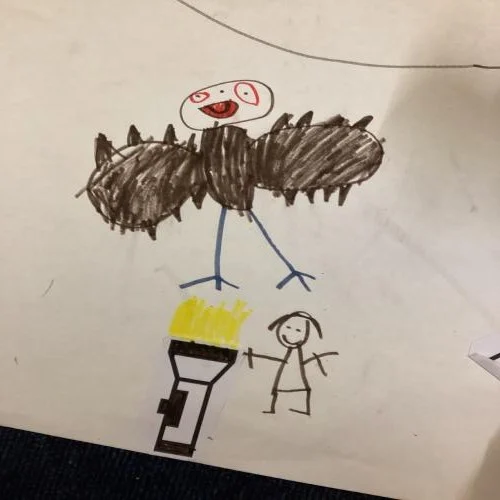 This week in Year 1, our teacher rolled out a huge sheet of paper across our classroom floor, and together we began to re-tell the story ‘Flashlight’. Collaboratively, we draw each scene, filling the paper with bright, detailed pictures of the boy’s adventure. As we drew, we shared ideas aloud about what sentences we might write to match each picture. It felt like we were bringing the book to life. Our voices, our drawings, and our words all working together to recreate the magic of Flashlight.