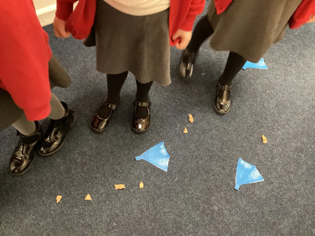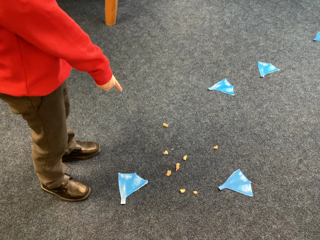 On Monday morning, we were puzzled to discover blue footprints and cake crumbs around the school. Then, we spotted a text called ‘The Blue Footed Booby’ by Rob Biddulph which helped us to identify that these were the footprints of a red footed booby called Barbara who was trying to steal our puddings! Throughout the week, we spent time exploring rich vocabulary from this text such as ‘mischievous’, ‘vanish’ and ‘mysterious’.