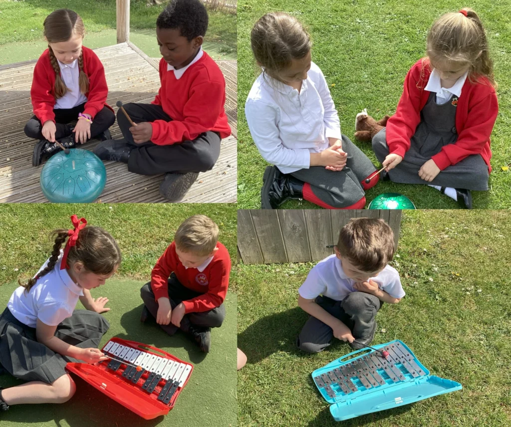 In Music, we have been busy exploring pitch. We started by using the steel drums to hear different sounds. Then, we learnt the difference between a high and a low pitch. Atfer this, we had a go at creating our own tunes using both a high and low pitch. We enjoyed sharing these with the rest of the class.
