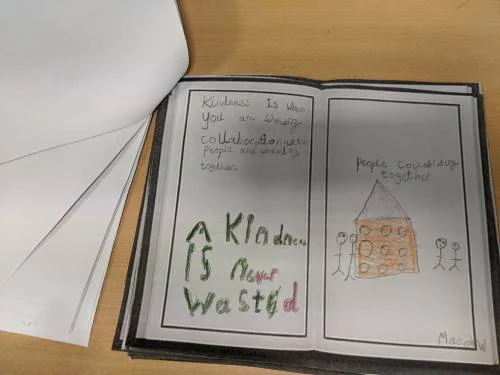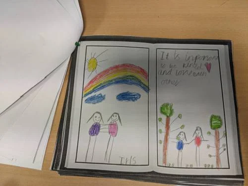 Finally, to complete the week, we celebrated all of our learning around ‘Anti-Bullying Week’. In assembly this week, we have been exploring the book ‘Always Remember’ by Charlie Mackesy. We used this text to demonstrate our understanding of kindness and shared ideas of how we can be kind to others. This afternoon, we completed many different activities around this book including writing our own pages to create a book for our own reading corner. This included lovely illustrations and captions about what kindness means to us. It now sits in our mini-library for us to read.