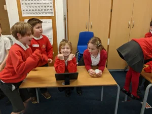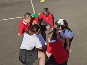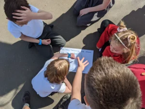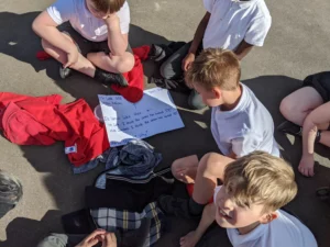 In Maths this week, we continued with Geometry. The children went outside for an investigation lesson, where they were faced with a variety of challenges. In teams, they worked together to find the answer or play a game. It was great to see the children enjoying their learning.