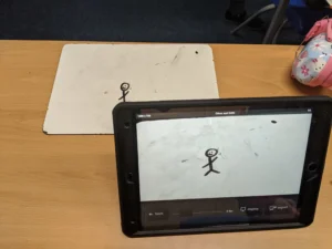 We have been looking at animation in Computing! We discussed ways in which we can make pictures move and had a go at making our own stop motion pictures on the iPads. Last week, we created flipbooks which when flipped quickly, showed a moving picture. This week we progressed and used an app called ‘iMotion’ to make it look like individual frames were moving.