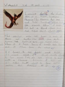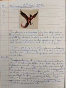 Recently in English, we have been working towards writing our own encyclopedia entry for a mythical beast which we have created. ‘Fantastic Beasts and Where to Find Them’ by JK Rowling has been our inspiration and this week we wrote descriptive paragraphs about the phoenix. It was awesome to see how imaginative the children could be with their descriptive language.