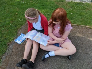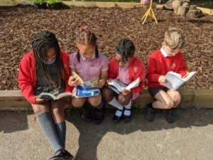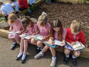 We have really enjoyed the glorious weather this week! For Free Reading Friday, we took our books outside and read in the sun. It was lovely to be able to share our favourite books with our friends, classmates, and even our teachers.