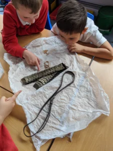 To kick off our new History unit, we looked at some ancient Roman artefacts and even tried on some of their clothes. We watched a video to see when the Romans invaded Britain and how this fits into our History timeline so far.