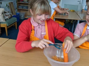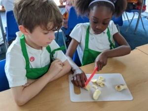 This week in Year 3, we looked at our cutting and peeling skills in DT! We got the opportunity to cut up some bananas and peel some carrots, demonstrating our knife safety skills along the way. The children did this all excellently and sensibly and will be ready to make their own seasonal tarts in the upcoming weeks.