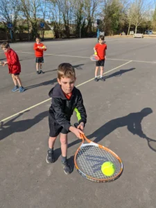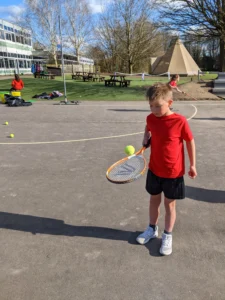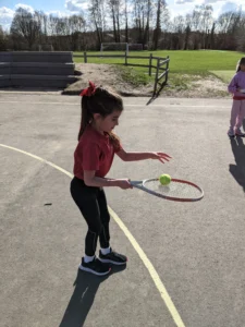 In Physical Education, we started our new unit on tennis. It was so much fun to try and balance the ball on a tennis racket and tried to beat the teacher by bouncing the ball on the racket without dropping it. This will all help when it comes to controlling the ball.