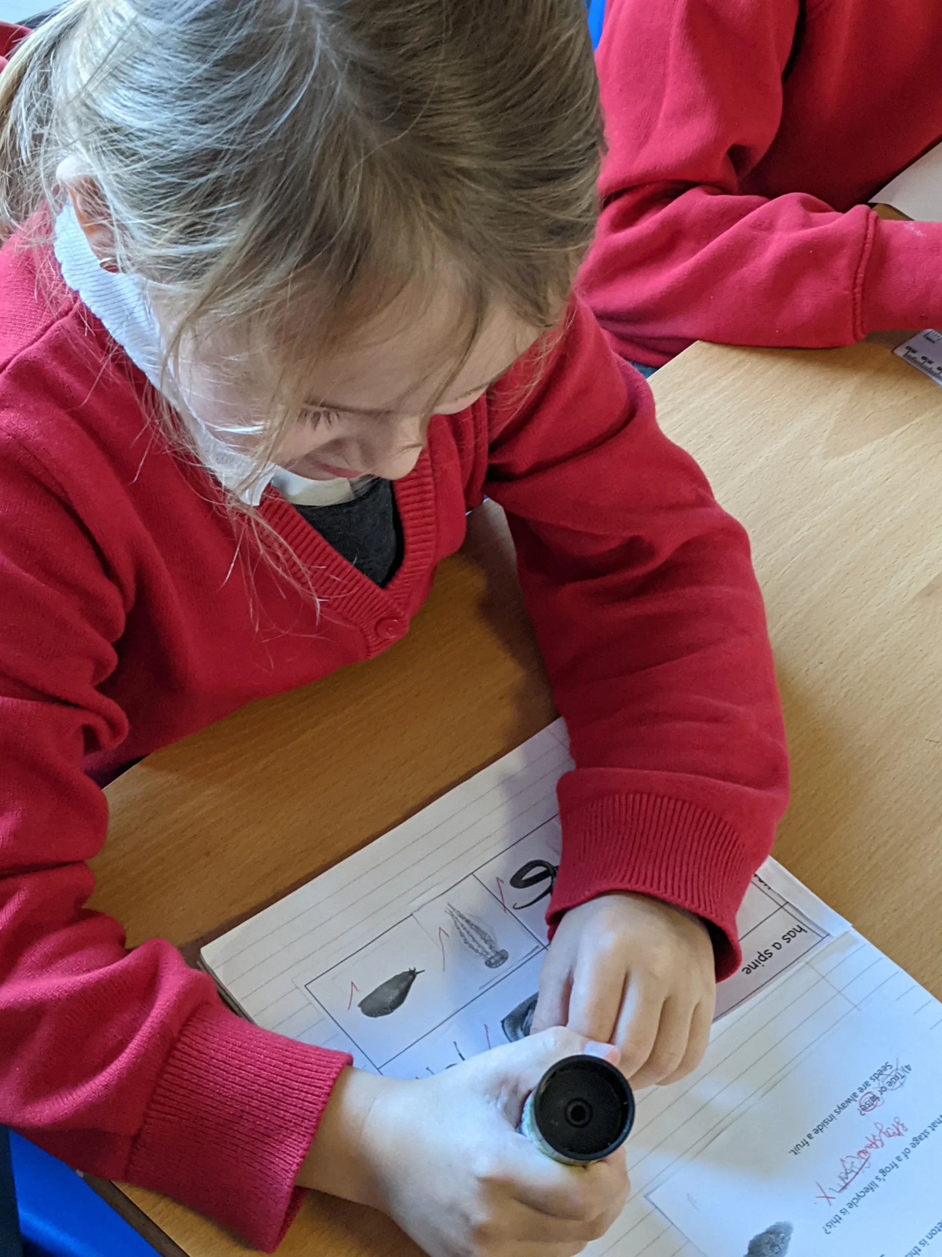 In Science this week, we used magnifying glasses and pocket microscopes to explore fossils. We also learned how fossils are formed and where they can be found.