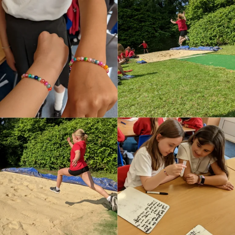 Another fantastic week in Year 4! We loved making friendship bracelets in Religious Education this week, to represent the Hindu celebration of Raksha Bandhan. This is a festival where they celebrate the bond between siblings, where sisters tie sacred threads around their brother’s wrists. This symbolises their love, protection and responsibility for each other. In Science, we continued learning more about teeth and learnt what plaque and enamel are and what they do. We explored this using an experiment to represent what happens when sugars meet the bacteria in our mouths. This morning, Year 4 had an amazing time trying out our new long jump pit in preparation for next week’s Sports Day!