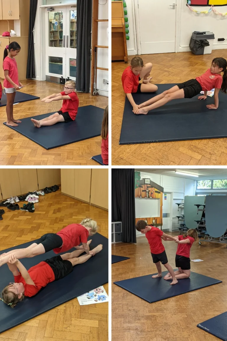 This week, Year 4 started their indoor PE unit – Gymnastics! We worked in pairs to coach each other on how to perform balances. We had to have good balance and make sure we had strong muscle tension to allow us to hold shapes. We then had a go at working in pairs to do some partner balances. These were tricky but we persevered!