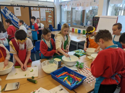 Another fabulous week in year 5! We had the pleasure of becoming Greeks for a day. This involved three activities: cooking, Olympics and geometry. We made flat breads and a Tzatziki. Everyone had a role in the ‘kitchen’ and the food was delicious! At the end of the day we sat down and tasted what we had made. There was even enough for seconds! During the Olympics, children had the opportunity to take part in the activities that were in the very first Olympics: a 200m race, discus and javelin. Finally, geometry! We learnt about some essential mathematicians, such as Pythagoras and Euclid, by researching and creating top trump cards. The whole day was exciting and full of interactive learning. The children (and adults) had an amazing time.
