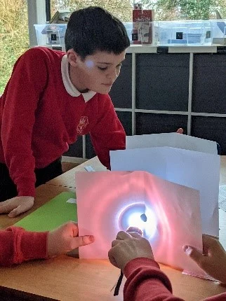 Year 6 loved exploring and investigating how glass prisms can produce a ‘Spectrum of Light’ in our Science lesson this week. Similarly, the Year 6s also learnt about ‘refraction’ and how light rays bend when entering a thick medium such as water.