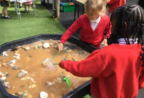 This week, the children have thoroughly enjoyed the start of our new topic ‘Under the Sea’. They have explored the different sea creatures and expressed their growing understanding of marine life through, creative artwork, fantastic writing and imaginative play in our tuff spots. The children have also been busy learning their big ‘teen’ numbers and were super engaged in our fun game of ‘find the missing number’ by hooking crafty crabs in the water.
