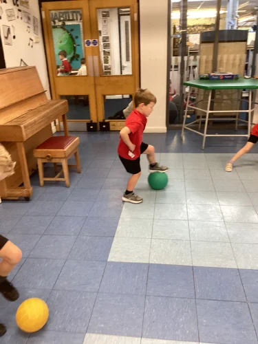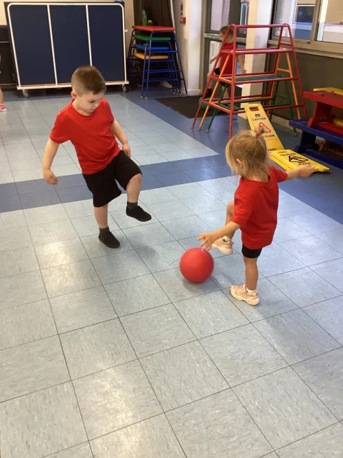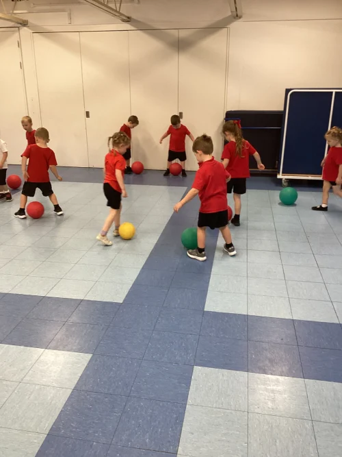 This week in PE, the children had a fantastic time developing their control and coordination skills using balls. They began by learning to handle the ball with their hands, passing it carefully around their bodies to build confidence and awareness. Sitting down, they practiced dropping and catching the ball, which helped improve their timing and hand-eye coordination. As their skills progressed, they moved on to using their feet to dribble the ball around the room, focusing on balance and movement. Working in pairs, they enjoyed rolling the ball to one another and then challenged themselves by passing and catching the ball using their feet. It was fun active session, full of teamwork and new learning!