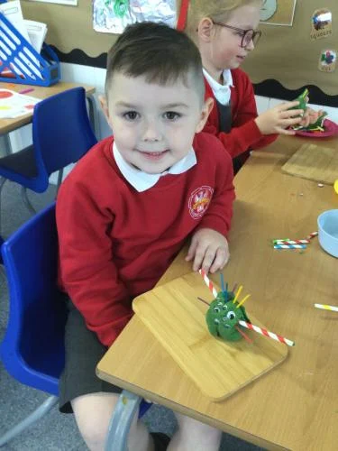 This week the children the children explored the life cycle of a caterpillar. They thoroughly enjoyed listening to the story of ‘The Hungry Caterpillar’. Throughout the week the children have re-enacted the story, created their own visual representations of the stages of the life cycle and they even became the hungry caterpillar by tasting some of the foods he ate.