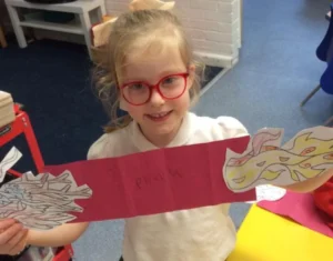 The children had a fantastic time exploring Chinese New Year. They learned about all the different animals and how Chinese people celebrate Chinese New Year with special food, using the colour red and lighting lanterns. During the afternoon the children had a great time pretending to be a giant snake, using scarfs and musical instruments they danced their way around the school.