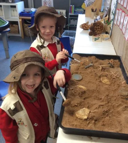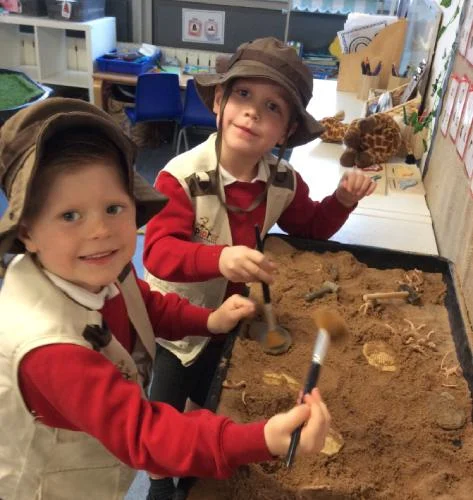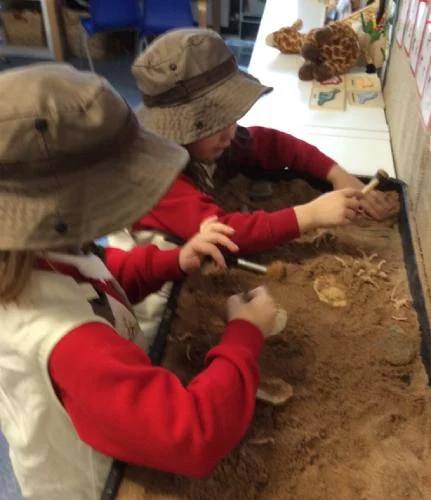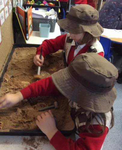 This week, the children have been learning about the renowned fossil hunter Mary Anning and the discoveries she made along the beaches of Lyme Regis. They had the opportunity to step into the role of palaeontologists, exploring ice and sand to uncover hidden dinosaur fossils.