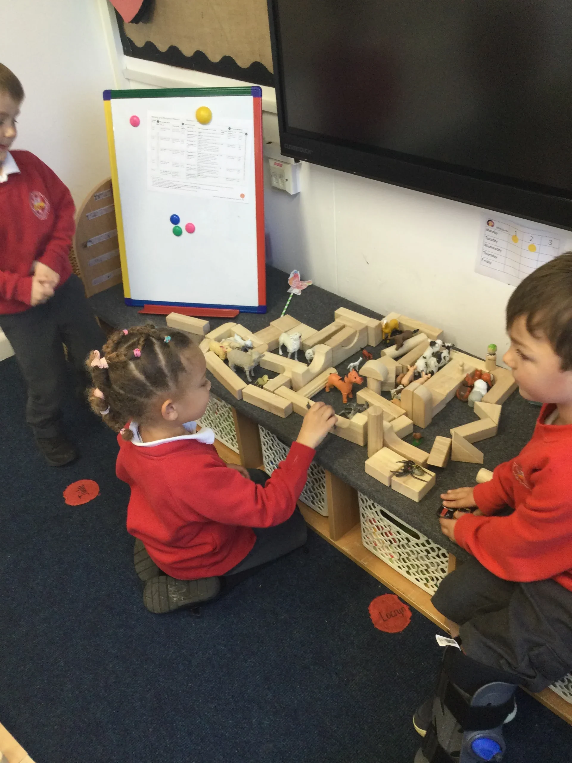 Our Year R children have been exploring the world of farming, learning the difference between pastoral farms that care for animals and arable farms that grow crops. They’ve thrown themselves into imaginative play, using wooden blocks to build stables, pens, crates and cosy shelters for their farm animals. One of the biggest hits has been our animal mud‑cleaning station, where they’ve absolutely loved getting messy while giving their muddy creatures a good scrub.