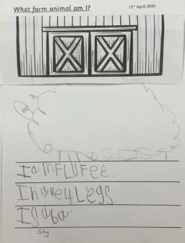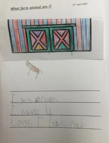 The children have had a wonderful week exploring the world of farming. They learned about different types of farms, including arable and pastoral, and were especially excited to discover more about the animals that live on them. The class worked hard to write thoughtful clues to help their friends guess which animal was hiding in the barn, and their creativity really shone through. We are incredibly proud of their enthusiasm and efforts.